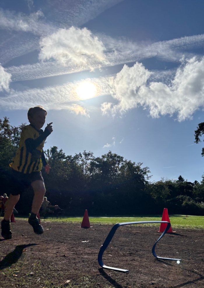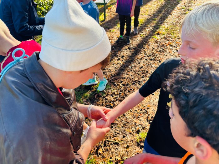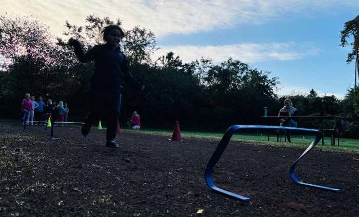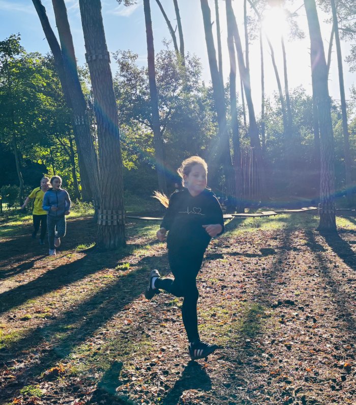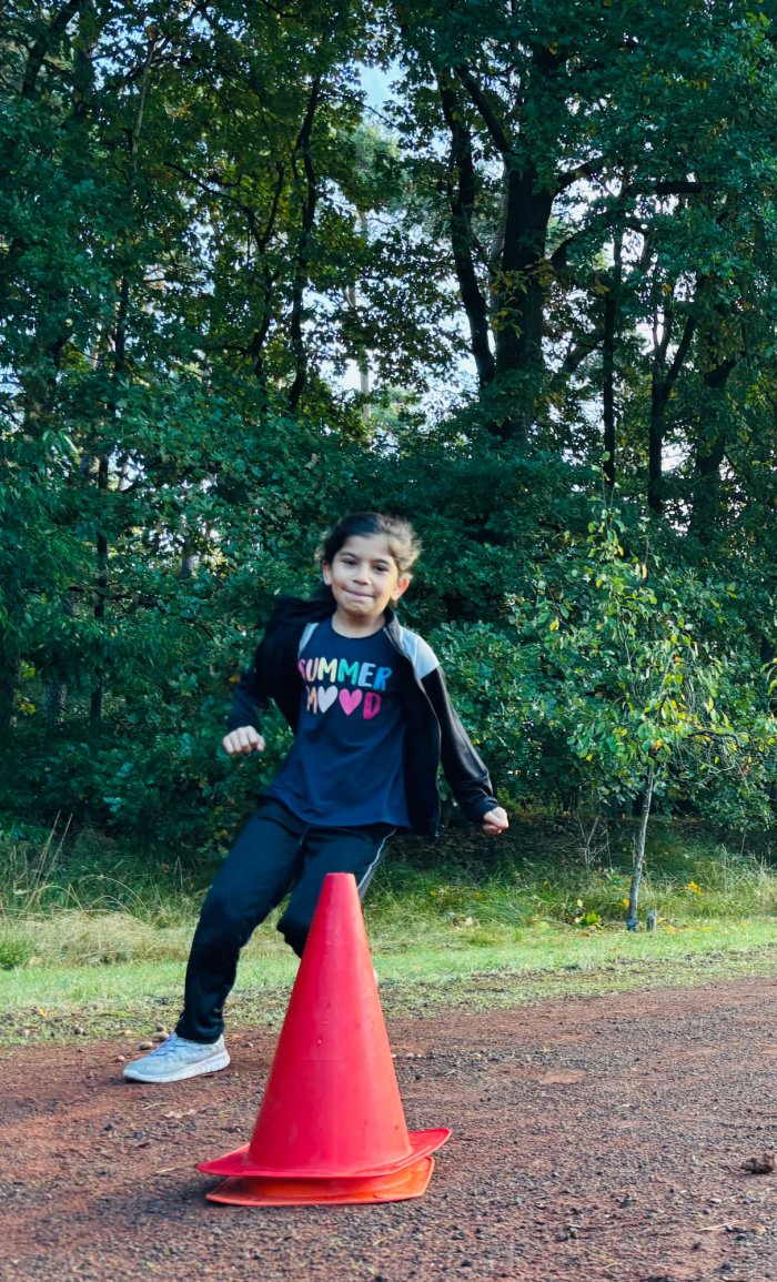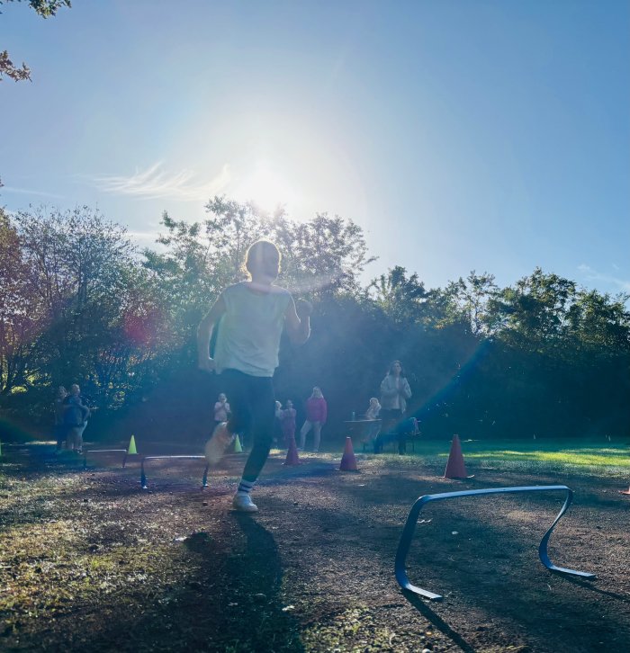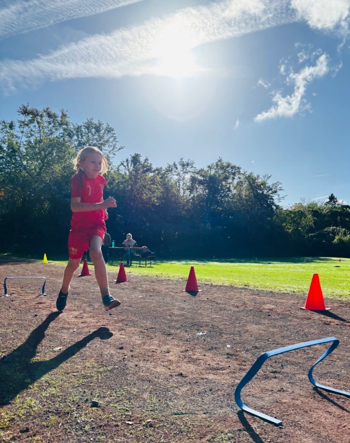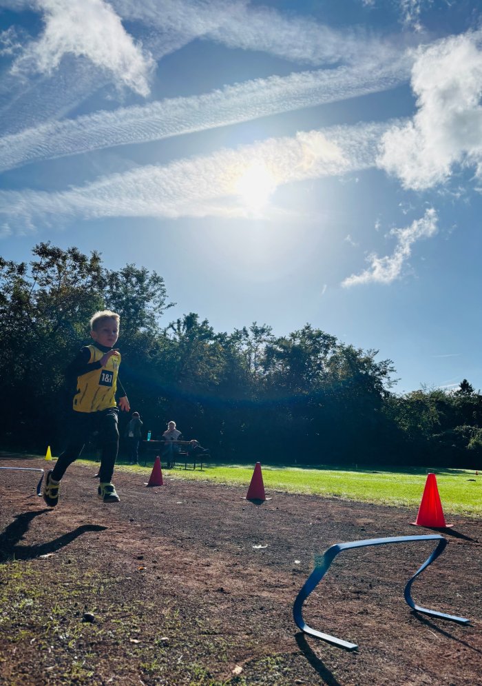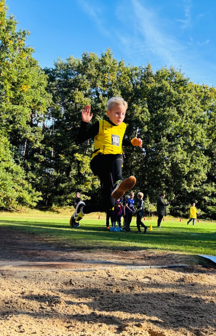 Am zweiten Tag der Bundesjugendspiele waren die Klassen 2, 3 und 4 an der Reihe. Bei dann sogar strahlendem Herbstwetter starteten alle gemeinsam mit dem Bewegungslied „Tante Rita“, das für gute Laune und warme Muskeln sorgte. Danach ging es an die vier Stationen: Ausdauerlauf, Sprint, Sprung und Wurf.