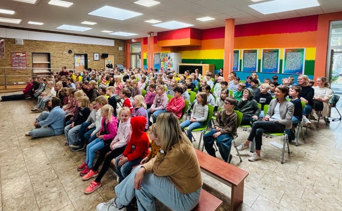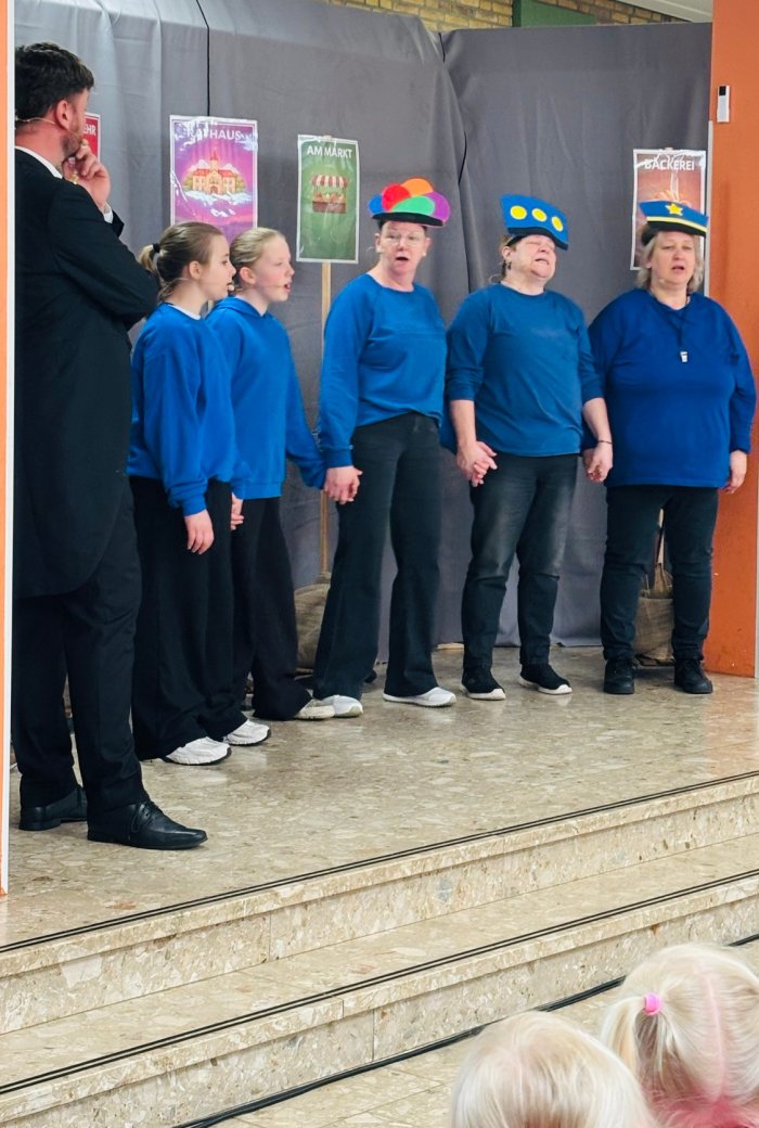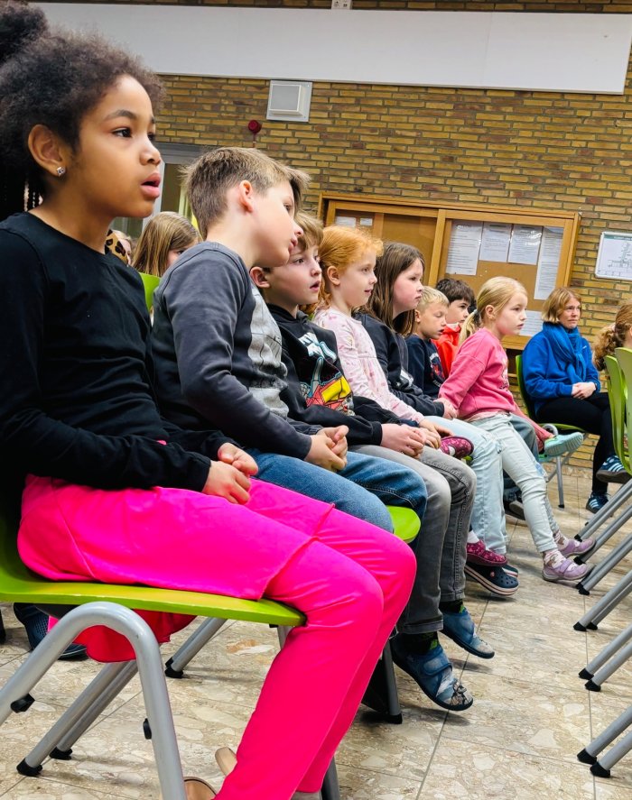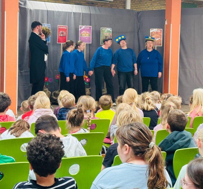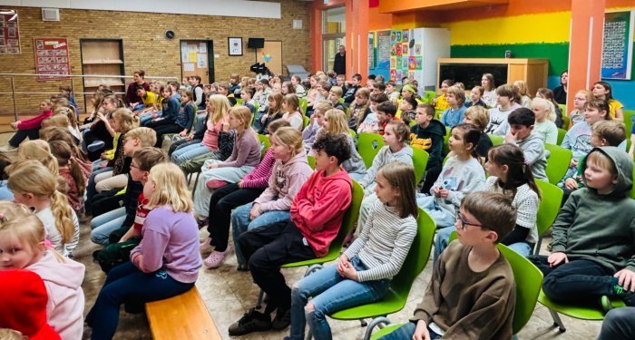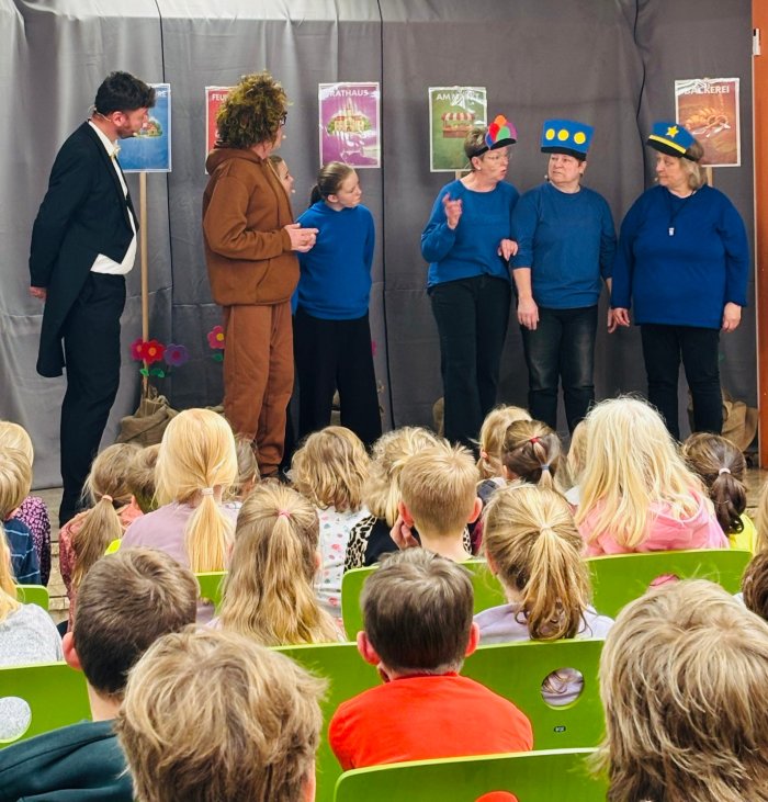 Die Aufführung fand in der Aula der Waldschule statt und begeisterte das junge Publikum, das gebannt zuschaute und die Darbietung sichtlich genoss.
