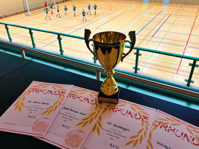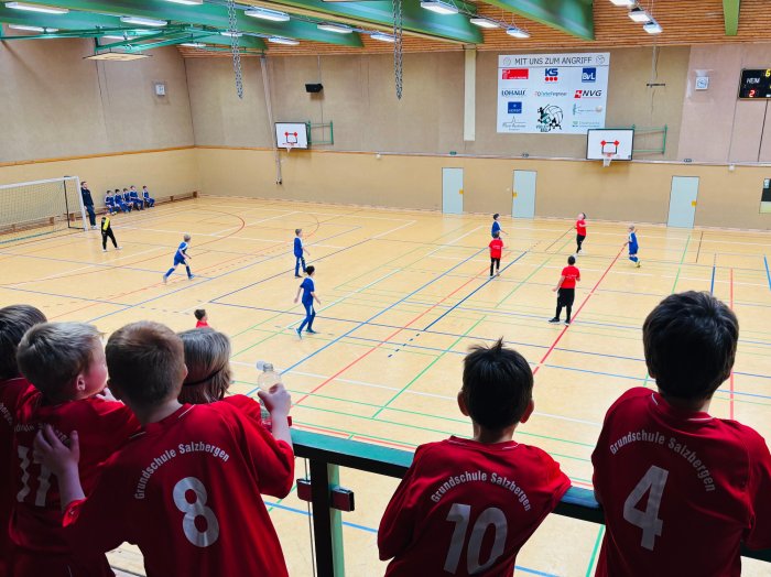 Teilnehmende Schulen waren die Grundschule Salzbergen, die Grundschule Holsten Bexten, die Josef-Tiesmeyer-Schule Emsbüren sowie die Waldschule Leschede. In einem attraktiven und spannenden Turniermodus traten alle Mannschaften gegeneinander an. Lautstarke Unterstützung kam von den Schülern und Schülerinnen der Josef-Tiesmeyer-Schule, die den kurzen Weg zur Sporthalle nutzten, um ihre Jungs anzufeuern.