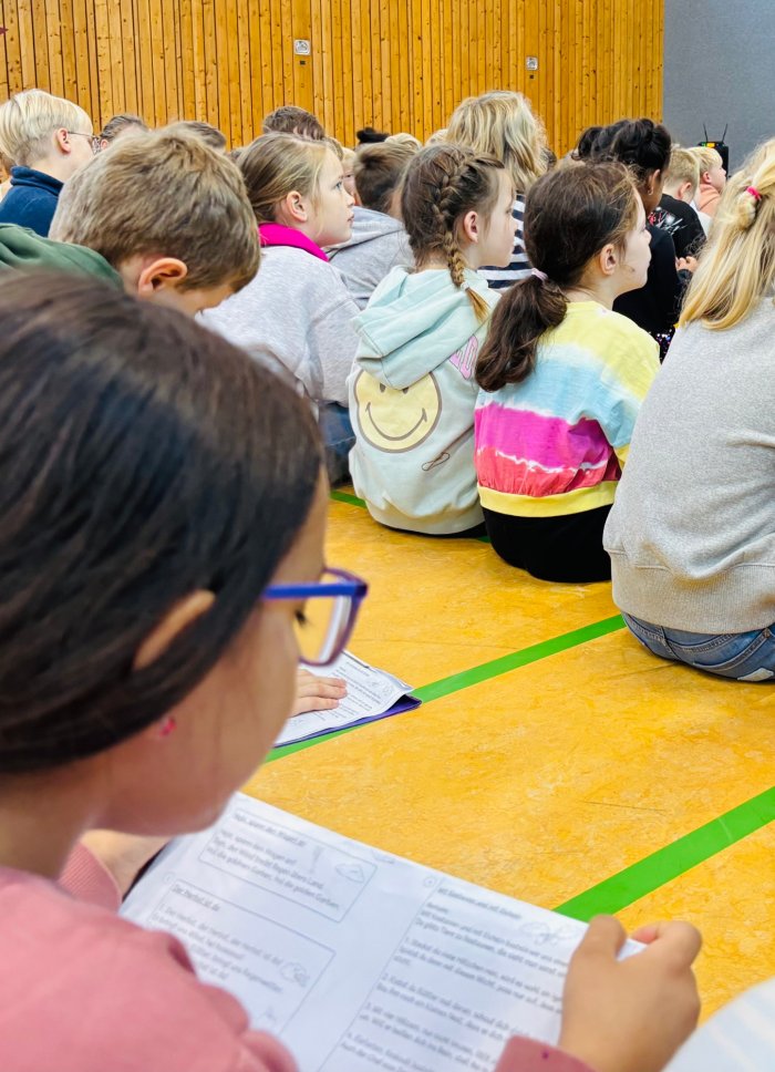Am Mittwoch vor den Herbstferien versammelten sich alle Kinder der Waldschule in der Sporthalle, um gemeinsam das traditionelle Herbstsingen zu feiern. Die Schülerinnen und Schüler stimmten sowohl klassische Herbstlieder wie „Hejo, spann den Wagen an“ als auch moderne Songs an. Die fröhliche Atmosphäre wurde von allen Beteiligten genossen.