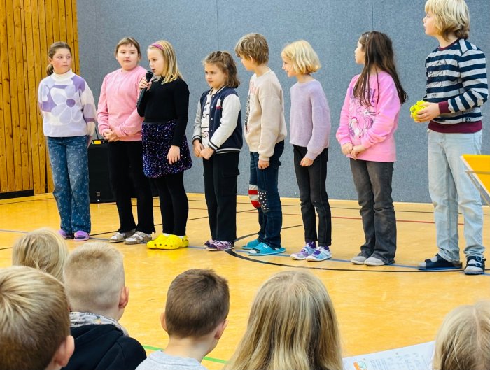 Zudem stellten sich die Streitschlichter vor, die sich den Kindern präsentierten. Diese engagierten Schülerinnen und Schüler sorgen täglich in den Pausen dafür, dass alle ein gutes Miteinander erleben. Auch unsere "Detektive mit Herz" zeigten uns ihren tollen Rap "Ich bin freundlich ist doch klar, denn Freundlichkeit ist wunderbar". Danke für eure tolle Arbeit!