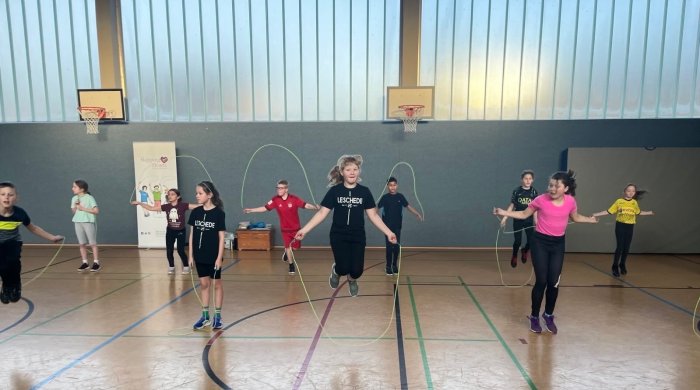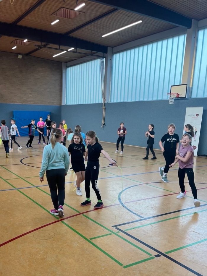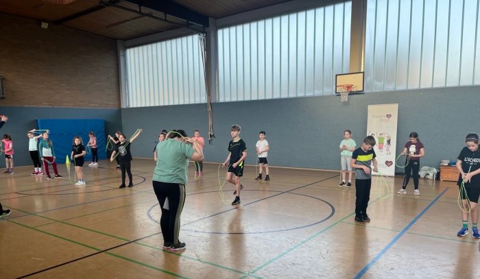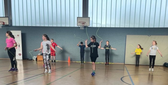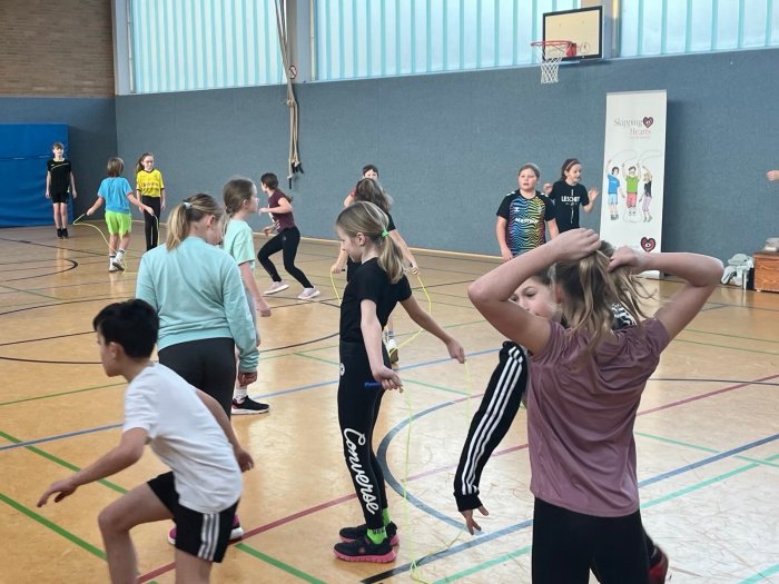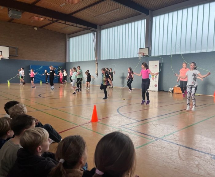 Am 21. Januar 2026 fand an unserer Schule der Workshop Skipping Hearts statt. Unter der Leitung einer Trainerin der Deutschen Herzstiftung nahmen 25 Kinder des 4. Jahrgangs teil.