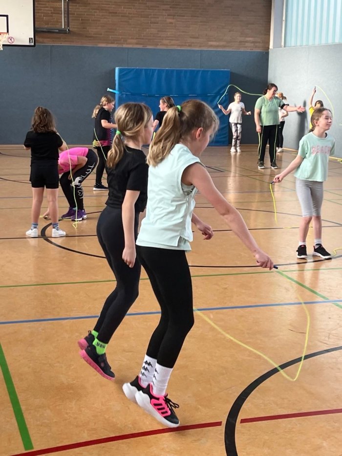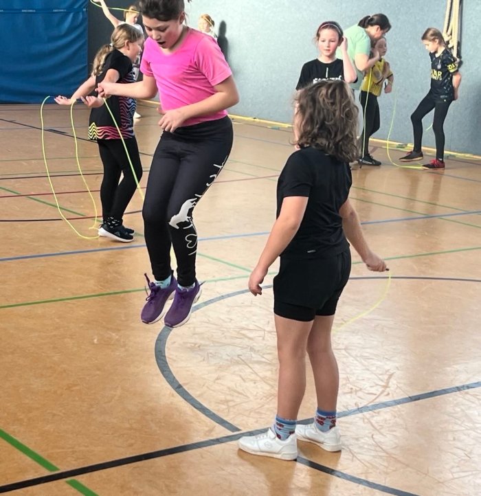 Gemeinsam lernten sie verschiedene Seilsprungarten kennen und übten diese mit viel Begeisterung.