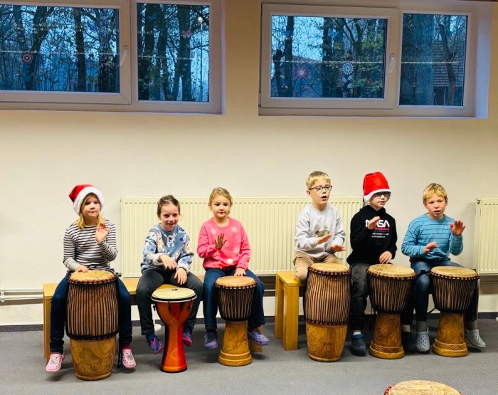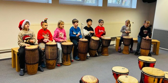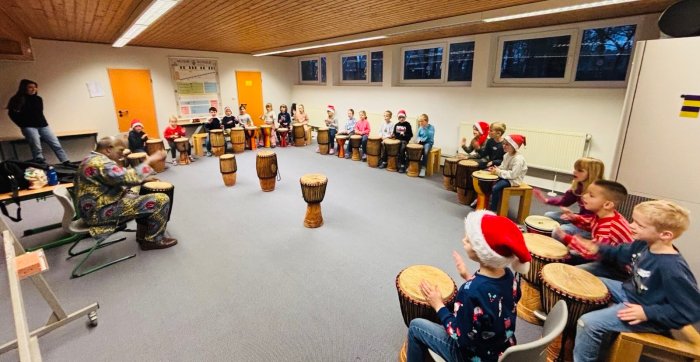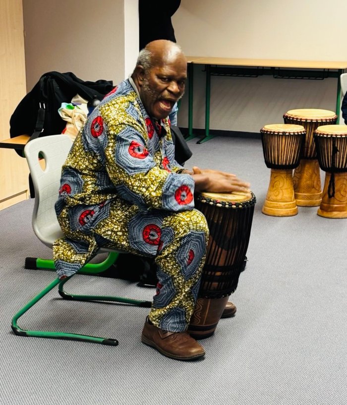 Am Mittwoch (26.11.25)und Donnerstag begrüßten wir an der Waldschule Morphius und seinen Sohn Michael aus Ghana. Zusammen reisen die beiden jedes Jahr durch deutsche Schulen, um Trommelworkshops durchzuführen.